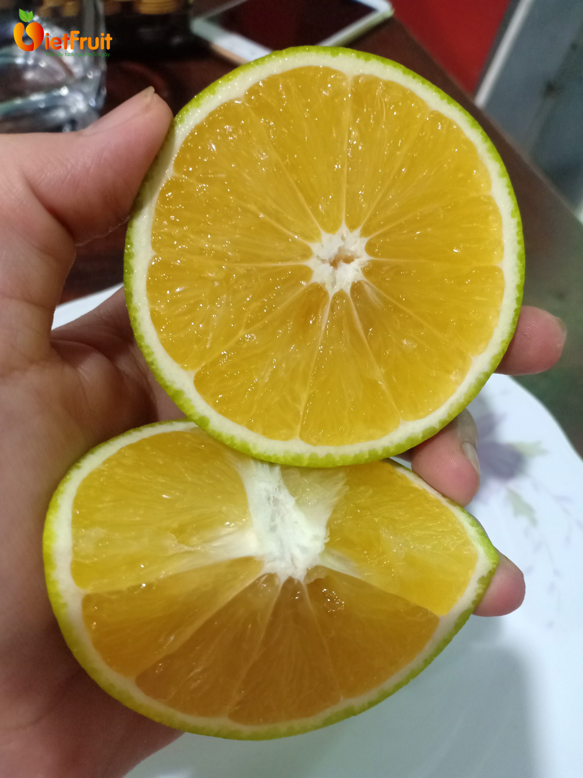 Đặc điểm: Cây cam xoàn rất chắc khoẻ, cho trái sai, trái vỏ mỏng và có vòng xoáy như đồng tiền. Trái càng nhỏ thì vị càng ngọt thanh, có mùi thơm nhẹ. Tép cam màu vàng, ngọt mát, có thể ăn cả múi để có chất sơ hoặc vắt lấy nước uống cực kỳ chất lượng. Thích hợp cho trẻ ăn vì ngọt và rất dễ ăn.