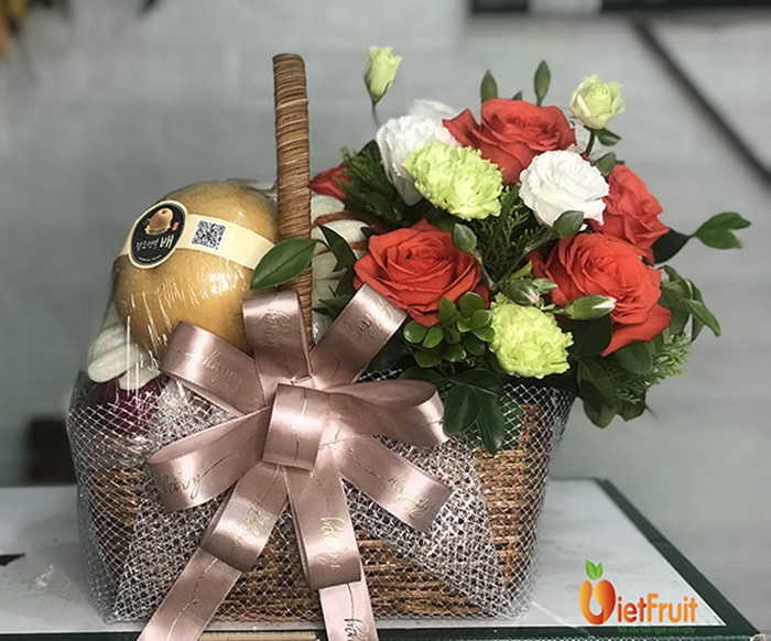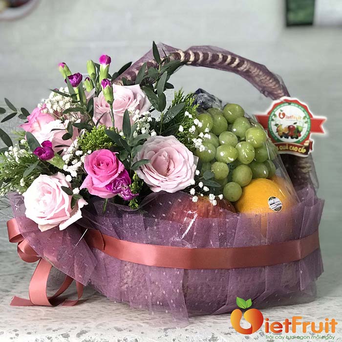 Giỏ được kết hợp từ hoa quả nhập khẩu cùng hoa tươi nên những giỏ hoa quả này luôn bắt mắt và nhìn thật sự sang trọng