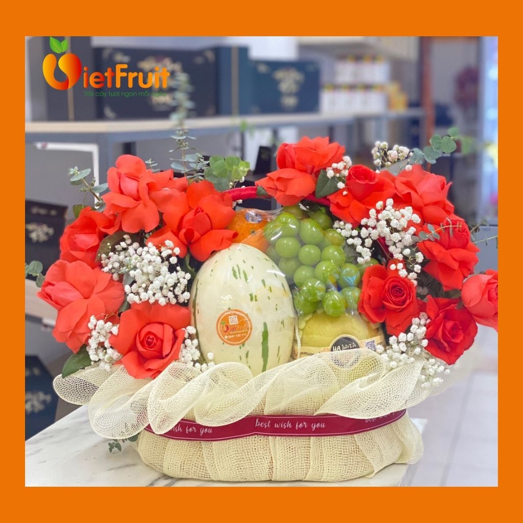 Giỏ trái cây nhập khẩu cao cấp VietFruit được thiết kế, bày trí khéo léo với bố cục hài hòa, cân đối. Giỏ là sự kết hợp giữa hoa tươi và những loại quả như Lê HQ,cam vàng Úc, táo Envy New Zealand,táo xanh,táo am.... Giỏ là món quà biếu tặng vô cùng lịch sự cho người thân, bạn bè, cấp trên trong những dịp lễ tết, sinh nhật, cưới hỏi, khai trương,...