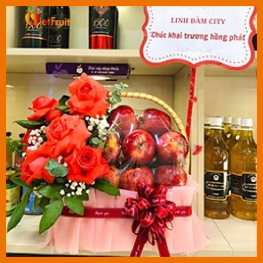 Giỏ trái cây nhập khẩu cao cấp VietFruit được thiết kế, bày trí khéo léo với bố cục hài hòa, cân đối. Giỏ là sự kết hợp giữa hoa tươi và những loại quả như Lê HQ,cam vàng Úc, táo Envy New Zealand,táo xanh,táo am.... Giỏ là món quà biếu tặng vô cùng lịch sự cho người thân, bạn bè, cấp trên trong những dịp lễ tết, sinh nhật, cưới hỏi, khai trương,...
