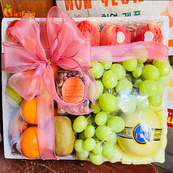 Hộp quà trái tym kết hợp giữa táo rockit + nho xanh tạo nên sự sang trọng của hộp quà