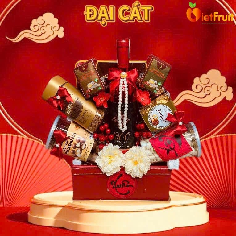 Set quà Tết được chọn lọc kỹ lưỡng với bánh kẹo cao cấp, rượu/đặc sản Tết, đóng gói hộp cứng sang trọng. Phù hợp biếu gia đình, người thân, đối tác, khách hàng dịp đầu năm.